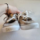 Van's Brown Washed Canvas Polka Dot Skate Shoes Sneaker Women's 11 Casual Canvas upper Lace up closure Color - Brown /gray with white polka dots Women's 11 UK 8.5 EUR 42.5 CM 27.5 Excellent pre-owned condition, no rips, tears or stains. White part is a little dirty, please look at pictures. Smoke free, dog friendly home. casual everyday comfort polka dot wardrobe print skate weekend day off