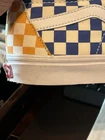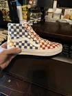 The product is a pair of Vans Off The Wall Hi Top Checkerboard Skateboard Shoes in Men's Size 7. These sneakers are designed specifically for skateboarding, featuring a classic checkerboard pattern and high-top silhouette. With a UK shoe size of 6.5 and US shoe size of 7, these shoes are perfect for men looking for both style and performance in their athletic footwear. The Vans brand is known for its quality and durability, making these shoes a reliable choice for any skateboarder. SIZES: MENS 7, WOMENS 8.5, THEY LOOK BRAND NEW AND HAVE VERY MINIMAL WEAR, THE SHOE LACES ARE ORIGINAL AND SHOW SOME WEAR, EASY FIX, PLEASE ASK QUESTION AND THANKS FOR LOOKING SMOKE FREE HOME