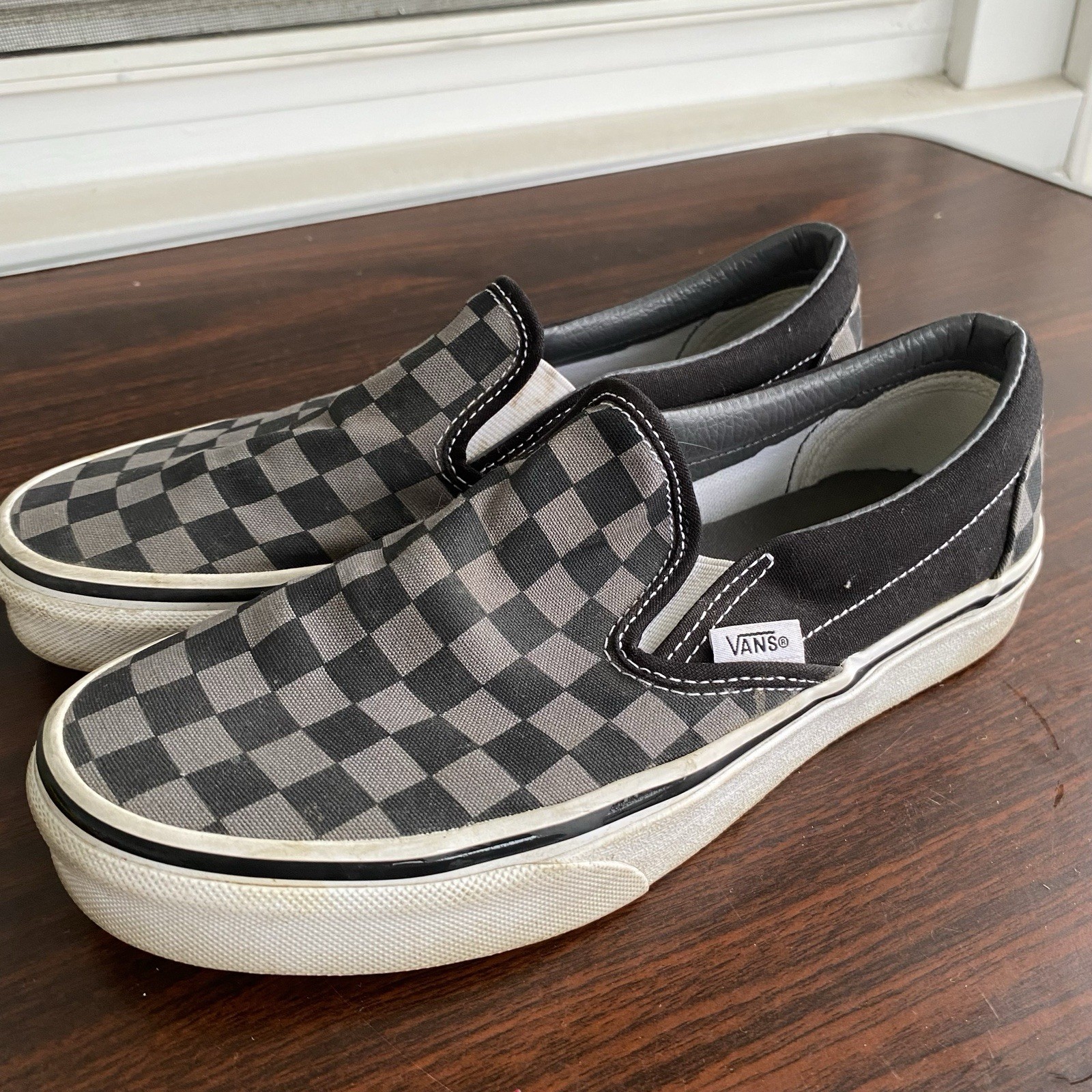 Vans Checkered Loafers Slip On Black White 6 / 7.5 Black Gray White Sneakers Exactly as pictured Smoke free