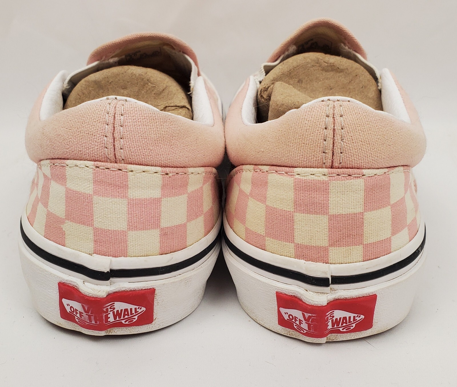 Vans Checkered Off The Wall Slip On Sneakers Shoes Loafers Pink White Size 5 Comfort These are adorable shoes for you or your daughter. They are very comfortable and perfect for any event. The checkered design has elastic for a little stretch in putting the shoes on. The sole of the shoe measures 1". The only "flaw" I can see at all is that the tag on the back of the shoe looks a little worn off. (see pictures) Clean, smoke free home. Please message me if you have any questions at all, especially before buying. Check out my other listings. Thank you for looking!!