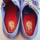 The Vans Low top Classic shoes loafers Flats in blue are a versatile and comfortable option for women in size 8.5. These lace-up sneakers feature a rubber outsole, making them suitable for various activities such as walking, driving, and skateboarding. The lightweight and foam insole provide added comfort, while the canvas upper material ensures durability and breathability. Perfect for all seasons, these athletic shoes are ideal for casual wear, activewear, and workwear, embodying the timeless style and quality associated with the Vans brand.