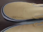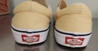 Van's Off the Wall Van's Classic Slip on Yellow Haze/ True White New in Box. Men's size 5.5 Women's size 7.0 These are so pretty! These came to me new in their box. Note: There are marks on the canvas on one shoe and the rubber on another. The good news is they can go right into the washer! No bleach! It would ruin the color! Please ask any questions before you buy, As I can no longer take returns on these shoes and boots. These could make a great gift! I have 5 more pairs of Vans in lots of sizes! ALWAYS FREE SHIPPING!