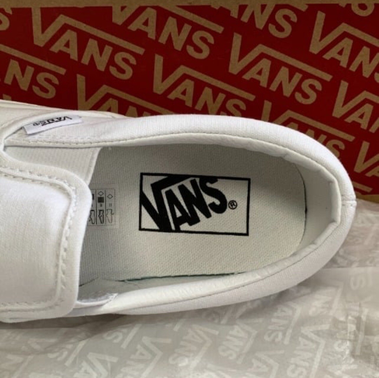 This pair of Vans shoes is a classic slip-on loafer with a round toe shape and white canvas fabric upper material. The shoes are comfortable and breathable, making them perfect for activewear and casual occasions during summer, fall, and spring. The outsole material is made of polyurethane, while the lining material is fabric. The shoes feature the Vans logo as an accent, with a solid pattern and a sports theme. They are available in US shoe size 5.5 and UK shoe size 4.5, with an EU shoe size of 37. The shoes are not customized and are not vintage. The model is VANS Off The Wall, and they were manufactured in Vietnam. Shipping same day.!