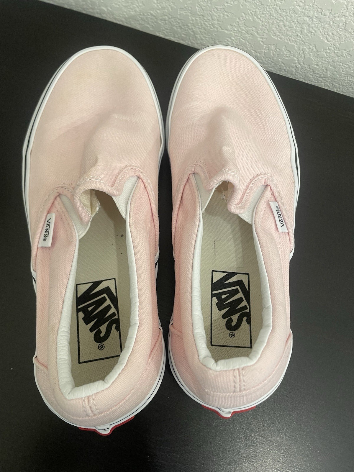 These shoes are super comfy and stylish! The light pink color is perfect for adding a retro vibe to any outfit. The slip-on design makes them easy to wear, and the soles stay clean even after regular use. Great for skating or just casual wear—love the minimalist look!