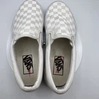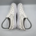 Up for sale is a pair of VANS Classic Slip Ons in Men's size 5.5. The shoes feature a white canvas upper with the iconic checkerboard pattern. They are a slip-on style with a low top shoe shaft design and a comfortable fit. The shoes are perfect for skateboarding, but can also be worn as a stylish sneaker. These shoes are pre-owned and show signs of wear. Please see pictures for condition of item.