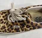 The Vans Era Leopard Black Women's Size 9.5 Skateboarding Casual Shoes in animal print are a stylish and comfortable option for casual wear. With a solid color pattern featuring a leopard print design, these sneakers are perfect for adding a touch of flair to your outfit. The Vans brand is well-known for its classic and colorful style, making these shoes a trendy choice for skateboarding or everyday wear. With maximum cushioning and standard shoe width, these athletic shoes offer both style and comfort in one versatile package.