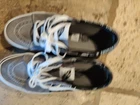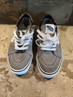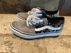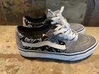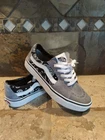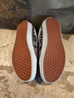 Elevate your sneaker game with these stylish Vans Off The Wall sneakers. Featuring a black paisley design with a suede gray mix these sneakers are perfect for any athletic activity or casual wear. The lace-up closure ensures a secure fit, while the standard shoe width provides comfort for all-day wear. Made with high-quality fabric materials, these Vans Authentic sneakers are durable and designed to withstand daily wear and tear. With a gray and black color scheme, these sneakers are sleek and versatile, making them a great addition to any wardrobe. Upgrade your footwear collection with these Vans Off The Wall sneakers today - Nice condition showing very little wear.