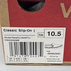 PLEASE READ THE WHOLE LISTING! ITEM Vans Kids Size 10.5 Classic Slip On Metallic Gold New. Box is included. Box has wear from storage. Actual Item Pictured. ____________________________________________________ For More Items in Store: For More Kids Clothes & Shoes Be Sure to Follow Our Store: BuddyGrover13 Please feel free to ask any questions prior or during the bidding process message me. ------------------------------------------------------------------ PAYMENT/SHIPPING Payments are processed through eBay managed payments. Items shipped within 2 days of payment. Payment and or arrangements must be made within 5 days of auction close. Failure to pay or make arrangements and the item will be re listed and eBay will be notified. Shipping charges include shipping and handling. I will combine ship on multiple purchases if possible to save you the buyer shipping costs. Office hours are Mon-Fri 9-5pm Pst. All items are shipped the following day after cleared payment. Shipping is done Mon-Fri Only. Purchases made on Fridays after 10am Pst. will not be shipped until the Following Monday. Exceptions may be made if I am available. RETURN POLICY No Returns. All items are sold as is. Returns are at my discretion. Request for returns must be made within 3 days of receipt of item. Buyer pays return shipping. Refund will be issued upon receipt of the returned item and verification. ***NO RETURNS for items that are Factory Sealed (New) and have been opened. No Returns for Opened Cosmetics, Perfumes, Lingerie or Beauty Products. If returns are accepted all contents must be returned. Thank you for viewing my listing and happy bidding!