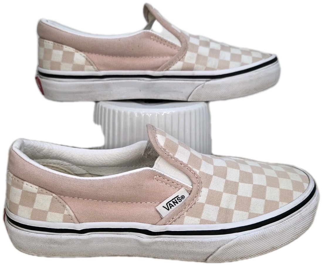 The Kids Size 2.0 (US) VANS Classic Slip-On Low in Pink Checkerboard is a stylish and comfortable sneaker for kids. With a low top design and slip-on style, these athletic shoes from VANS are perfect for active kids. The pink color adds a fun and vibrant touch to the classic VANS design, making them a trendy choice for everyday wear. Made for comfort and style, these sneakers are part of the VANS Core Classics product line, ensuring quality and durability for your little ones. Please see pictures for signs of wear.