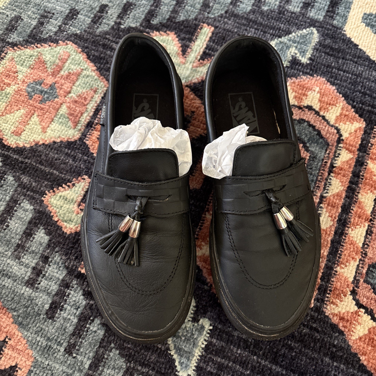 The Vans loafers V 196CF in black are a stylish and comfortable option for those looking for a blend of fashion and function. These loafers are unisex with tassels. I wore them once, the tread is like new, also the shoe is like new.