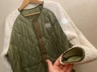 Elevate your winter wardrobe with this Vans Men's Puffer Jacket. This reversible windbreaker coat comes in a striking green color and features a quilted design for added warmth. The parka style and long jacket/coat length provide a comfortable and cozy feel, while the button closure ensures easy wear. This rare jacket is made of high-quality polyester and is perfect for any outdoor activity. The regular fit and medium size make it a great addition to any outfit. Whether you're hitting the town or just running errands, this Vans jacket is sure to turn heads. Excellent condition, like new.