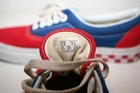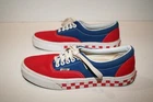 Elevate your skating game with these authentic Vans New Era low top skating shoes. With a round toe shape and comfortable cotton blend upper material, these shoes are perfect for casual wear, activewear, and travel. The multicolor pattern in red, white, and blue with checkered soles adds a stylish touch to any outfit. These shoes feature a lace-up closure and are available in UK shoe size 5.5, US women's shoe size 8.0, and US men's shoe size 6.5. The canvas lining material and fabric type ensure durability and comfort. The Vans off the wall product line guarantees quality and style. Get ready for summer, fall, or spring with these trendy unisex adult shoes.