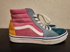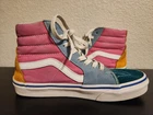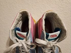 Look at all the pictures. The pink parts have stains, the rest of the shoe is in good condition