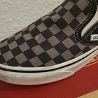 good condition size 6.5 comes with box This product is a pair of Vans Off The Wall Classic Slip-on shoes in a grey and black checkered UK size 6.5. They feature a low top shoe shaft style, rubber cleat type, and standard shoe width. The trainers are ideal for casual occasions and have a classic theme with a canvas upper material and rubber outsole. The Vans brand adds a stylish touch to these sneakers, making them a perfect choice for summer wear. Complete with the original box, these slip-on shoes are a must-have for any fashion-conscious man.