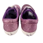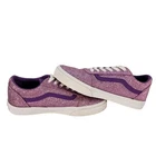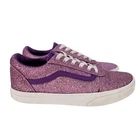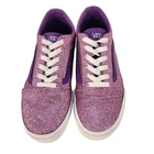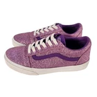 Add some sparkle to your skateboard with these authentic VANS Off The Wall glitter shoes in pink and white. With a lace-up closure and waffle sole, these athletic shoes are perfect for teens who love to skate. The glitter accents and colorful theme make these shoes stand out and the low top design ensures they won't catch on anything. These shoes are Missy's and come in a women's size 4. Don't miss out on the chance to add these stylish and comfortable shoes to your collection.