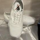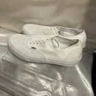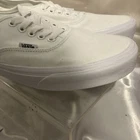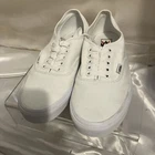 Embrace the classic skate style with the Vans Off The Wall Low Canvas Trainers. These iconic sneakers, in an all-white design, deliver a clean and versatile look suitable for any casual occasion. The durable canvas upper and lining ensure comfort and breathability, while the robust rubber outsole provides excellent grip on various surfaces. Available in a women's US size 10.5 (equivalent to a UK size 8 and an EU size 42), these trainers feature the timeless lace-up closure for a secure fit. The low-top silhouette allows for a full range of motion, making them ideal for enthusiasts who value both form and function in their footwear. Whether you're hitting the streets or the ramps, these Vans are a solid choice for any season.