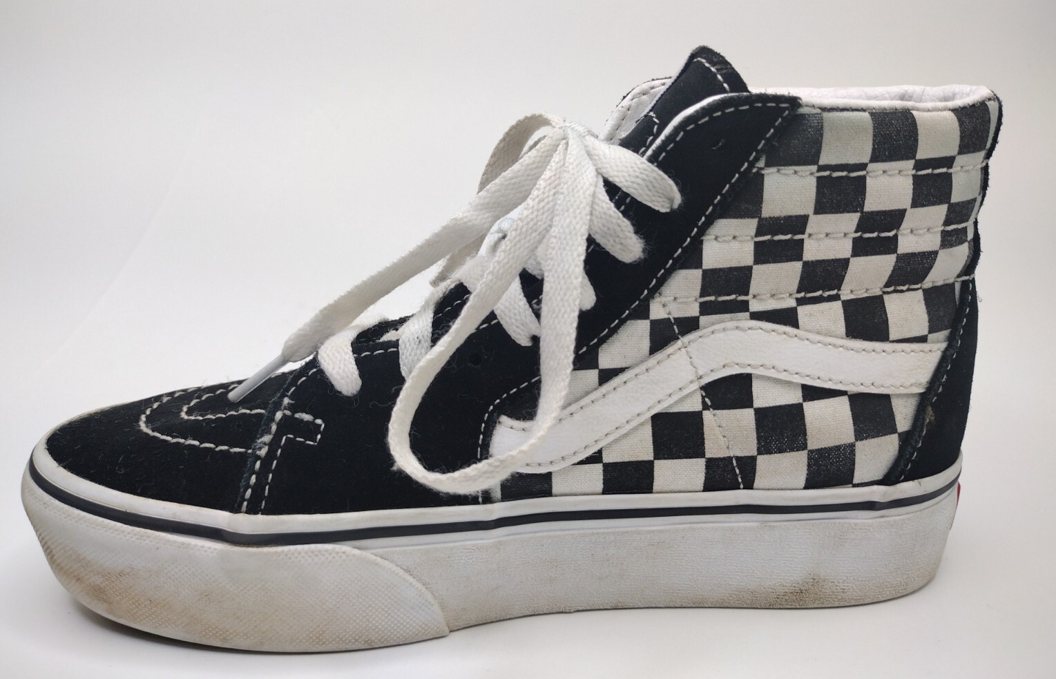The Vans Off The Wall Sk8 Hi Platform 2.0 Women's Size 6 Black Checkerboard Shoes are a stylish and versatile choice for everyday wear. Featuring a lace-up closure, high top design, and rubber outsole, these shoes offer both comfort and support for various activities like walking, skateboarding, and casual outings. The black checkerboard pattern and colorful logo accents add a pop of personality to the classic sneaker style. Made of durable canvas and fabric materials, these shoes are a must-have for the modern woman looking for a trendy and practical footwear option.