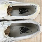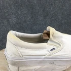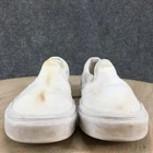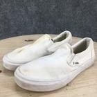 Vans Shoes Mens 7 Womens 8.5 Off The Wall Casual Slip On Loafer White Fabric *Please read the entire description* Fair Condition: Tops have minimal wear, with insole wear and scuffing on the heel. Bottoms have sole wear and heel wear. With yellow stains and dirt. US Size: 7 UK Size: 6 AU Size: 6 Euro Size: 39 Item well cared for. We ship SAME DAY the item is ordered so expect a FAST delivery! Condition of shoes are best viewed by zooming in on pictures. Please look at all of them :) The photo with a ruler is lined up with the back of the heel and shows the approximate length of the shoe from the top view. Measure and compare your own shoes in the same fashion. We are sorry but we cannot answer any questions regarding further measurements. The tag on the shoes is just a SKU number for organization and is not a size or a price tag. Message me if you have any problems and we will make it right QUICKLY! We post 100s of items every week in my store. Check it out!