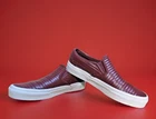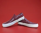 These Vans Off The Wall Loafer Sneakers are the perfect addition to your shoe collection. With a slip-on closure, low-top shoe shaft style, red color, and standard shoe width, they are versatile and comfortable. The sneakers are made from man-made upper material with fabric lining and foam insole material, making them perfect for summer, fall, and spring. The Vans Old Skool product line model 721356 has a signature style code and is available in UK shoe size 4.5, US shoe size 5.5, and EU shoe size 47. The shoes are great for activewear and casual occasions and are suitable for both men and women. These sneakers have rubber outsole material and are not signed or vintage.