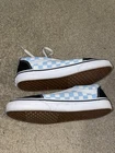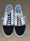 Step up your skate game with these stylish Vans Old School Blue and White Checker Black Sneakers. The lace-up closure ensures a comfortable fit while the rubber outsole provides superior grip on any surface. The fabric lining and insole material add to the overall comfort of the shoe, making them perfect for all-day wear. These low-top sneakers are perfect for any season, whether it's summer, fall, or spring. The white, blue, and black color scheme is accented with the iconic Vans logo, making them a must-have for any fashion-forward skater. The canvas fabric type and Vans' reliable product line make these shoes a durable choice for any skateboarding performance or activity.