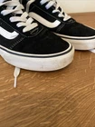 Step into classic style with the Vans Old Skool sneakers, a timeless addition to your footwear collection. Designed for women with a penchant for both comfort and style, these shoes feature a sleek black suede upper complemented by the iconic Vans canvas checkerboard pattern on the sidewalls. The low-top silhouette and lace-up closure ensure a snug and secure fit, perfect for an array of activities from skateboarding to school. Crafted in Vietnam, the Vans Old Skool sneakers boast a durable construction and a comfortable feel thanks to their cushioned insole and supportive design. These size 7 US (37 EU) athletic shoes are not customized, maintaining the authentic Vans look and feel that has been cherished for generations. Add a versatile and iconic piece to your wardrobe with these must-have sneakers.