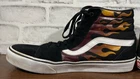 Vans Old School Sneakers in Men's size 11 feature a black suede upper with flame design, lace-up closure, high-top shaft style, rubber outsole, and cushioned, breathable comfort. The classic retro style is perfect for activewear, casual, or workwear use. Ideal for winter, summer, fall, or spring seasons, these VANS sneakers are a colorful addition to any wardrobe. Very good preowned condition with normal preowned wear and no issue. Please see all photos. For clothing specifically, see photos for all measurements and/or any issues if applicable. Pay close attention to the measurements as the size of the garment may quite possibly be different than the actual measurement(s) due to washing, shrinkage, or stretching as these are used clothes. The size in the title is the size on the tag of the garment. See photos for measurements of actual measurements as they may differ. ALWAYS CHECK THE MEASUREMENTS IN THE PHOTOS. This will remove any questions on measurements as well as always cover the possibility of human error in the listing(s) in the case of a typo or oversight. All clothing and shoes have been washed/cleaned, and comes from a smoke free environment. If shoe trees appear in the photos, they are for photography purposes only to illustrate how the shoes look filled out, and are not included. I am available for questions. I accept or negotiate reasonable offers. Have an amazing day. Thank you.