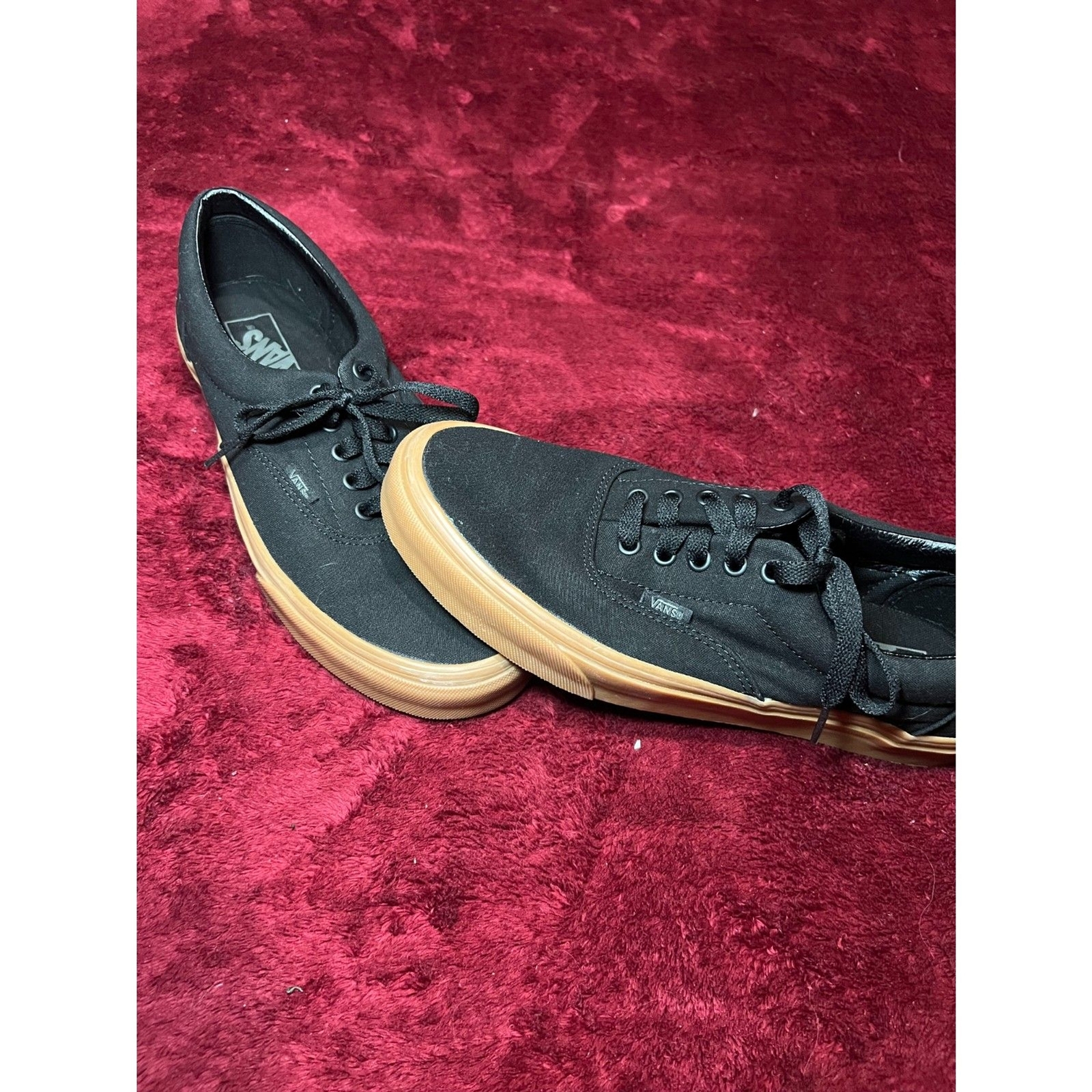 Mens size 10 like new classic vans. Black with tan bottoms. Low top skater shoes.