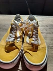 Step up your shoe game with the Vans Men's Old Skool Sneaker in a vibrant (Color Theory) Golden Yellow. Known for their classic skate-inspired design, Vans delivers a staple piece for any sneaker enthusiast's collection. These kicks are a size 6, tailored to fit with the same comfort and style expected from a brand synonymous with skate culture. The iconic silhouette is enhanced by a bold yellow hue, offering a fresh take on a timeless look. Whether you're hitting the streets or the ramps, these athletic sneakers provide a perfect blend of durability and trend-setting fashion. Slip into a pair and add a splash of color to your footwear repertoire.