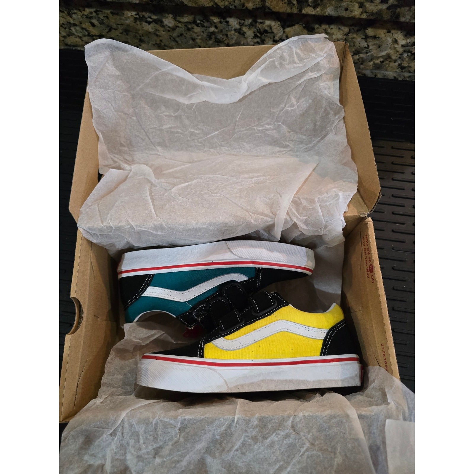 Vans Shoes | Vans Old Skool V - Color Block Black - Kids Skate Shoes Size 2 | Color: Green/Yellow size 13.5 Y