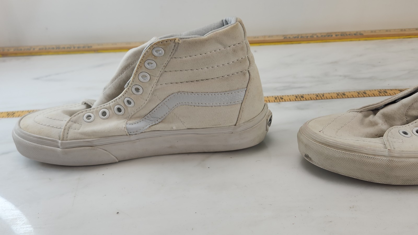 Step into classic style with the Vans SK8-Hi in True White on White, a timeless canvas sneaker designed for both comfort and durability. The high-top silhouette and standard shoe width provide a supportive fit, while the lace-up closure ensures your feet stay secure whether you're skateboarding, walking, or cheering it up. These versatile shoes are equally suited for activewear, casual outings, or work environments, offering a solid pattern that complements any wardrobe. Crafted with a cushioned insole and a robust rubber outsole, these Vans are built to handle varied activities and seasons, making them an essential addition to your footwear collection.