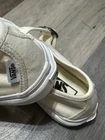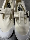 The product is a pair of Vans STYLE 93 Beige Canvas White Rubber MARY JANE Sneakers in women's size 6.5. These sneakers feature a classic Mary Jane style with a buckle closure, cream color canvas upper, and white rubber sole. They are part of the VANS Style product line, making them a trendy and comfortable option for women looking for athletic shoes with a unique design.