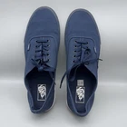 Vans Shoes Mens Size 13 Navy Blue Canvas Lace Up Low Top Sneakers Casual Skate Gently worn with light dirt and scuffing on midsoles and outsoles, especially at toes and heels. Uppers are clean with minimal wear and no major stains, rips, or holes. Insoles and structure remain solid; original box is not included. Brand: Vans Style: Low top canvas skate-inspired casual shoes with lace-up closure and rubber waffle outsole. Color: Navy blue uppers with navy foxing and white midsole trim. Gender: Mens Size on tag: US Men 13, UK 12, EUR 47, CM 31.0. Materials: Canvas uppers with textile lining and rubber soles. Details: Classic Vans logo tab at the side and heel, six-eyelet lacing, low profile silhouette suitable for everyday casual wear or skating. 0604 All items are bagged and sealed after being photographed, then stored in a smoke free environment to ensure the item is exactly the same as when photographed. I carefully package and ship daily. Feel free to contact me with any questions.