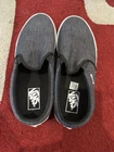 Step up your skate game with these Vans Classic Asher Slip-On Sneakers. The modern design features a solid gray canvas upper material with a low top shoe shaft style. The polyurethane outsole and fabric lining material provide comfort and support for all-day wear, perfect for summer, fall, or spring. These Vans shoes are perfect for men who want to add a touch of style to their activewear. The slip-on closure makes them easy to wear, while the athletic design ensures performance and activity. The shoes are available in US size 9.5 and EU size 43, with a medium shoe width. Don't miss out on these must-have sneakers for your collection.