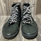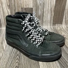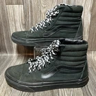 Elevate your sneaker game with these Vans Sk8 Hi shoes. The sleek black color and high-top design make them a stylish addition to any outfit. The shoes are made with a durable canvas lining and feature a standard shoe width for maximum comfort. With a solid pattern and the iconic Vans brand, these sneakers are perfect for any skate enthusiast. The style code 721356 and UK shoe size 6.5 make these shoes a must-have for any sneaker collector. Whether you're hitting the streets or the skate park, these Vans Sk8 Hi shoes will keep you looking and feeling great.