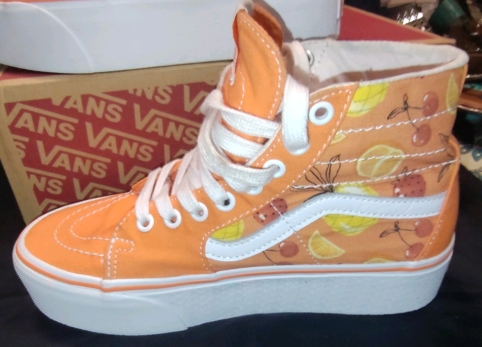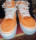 Elevate your skateboarding experience with the Vans Off The Wall Sk8 Tropical Summer Tangerine High Taper sneakers. In a vibrant orange hue, these shoes are a standout piece that reflect your love for both style and function. The durable suede upper material provides a comfortable fit while withstanding the demands of your active lifestyle. Designed for the summer season, these high-top sneakers feature a rubber outsole for superior grip and traction. The lace-up closure ensures a secure fit, making them ideal for skateboarding or any activity that comes your way. The sleek design, combined with the comfort-driven features, makes these Vans a smart addition to any footwear collection. Comes with box