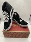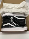 Elevate your skateboarding game with these sleek Vans Sk8-Hi sneakers in black. Designed for both men and women, these athletic shoes boast a comfortable and durable build, perfect for any skateboarding enthusiast. With a US shoe size of 10.5 and a medium width, these sneakers are sure to fit snugly and provide the support you need for your skateboarding adventures. The Vans Sk8-Hi model is a classic sneaker style that has been tried and true over the years, making it a must-have for any skateboarding brand. These shoes are perfect for those who value both style and functionality, with a sleek black design and comfortable fit. Whether you're hitting the skateboard ramp or just need a stylish pair of sneakers, these Vans Sk8-Hi sneakers are the perfect addition to your shoe collection.