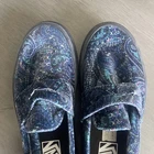The Vans Skate Style 53 Men's 5 Women's 6.5 Blue Paisley Velvet Slip-On Loafers Shoes are a stylish and comfortable option for casual wear. These slip-on loafers feature a paisley pattern in a vibrant blue color, making them stand out in any outfit. Made with a silk blend upper material and standard shoe width, these loafers are perfect for the summer, fall, and spring seasons. The Vans brand ensures quality and a classic slip-on design, making these shoes a versatile and trendy addition to any wardrobe.