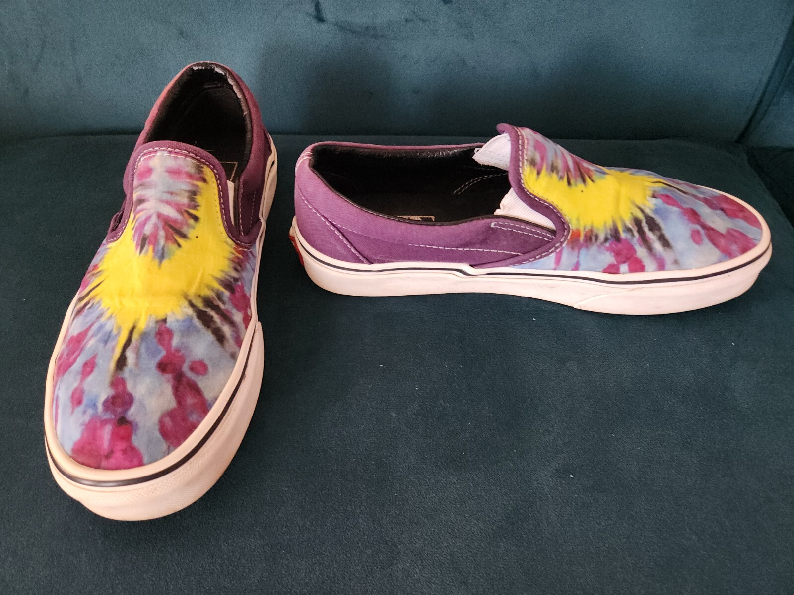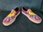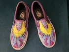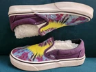 Vans Classic Slip On Purple Tie Dye 'Mysterious' Sneakers Women's Sz 7.5 Men's Sz 6 / EU 38.0 / UK 5.0 / 24.0 cm This is a wonderful comfortable slip on. Great construction. Measurements : approx. 10 in across the sole and 9.5 in across the interior foot bed. Condition : Preowned and in good condition, with some marks and scuffs to the white heel and wear to back heel logo. Expand pictures to full screen for best viewing. Pictures shot in bright light to show detail. From a clean non smoking pet free home. Thanks for looking!