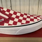 Vans Classic Slip On Checkerboard Ceris Red True White Shoes Size 8.5 M 10 W. First 5 pictures are stock photos.