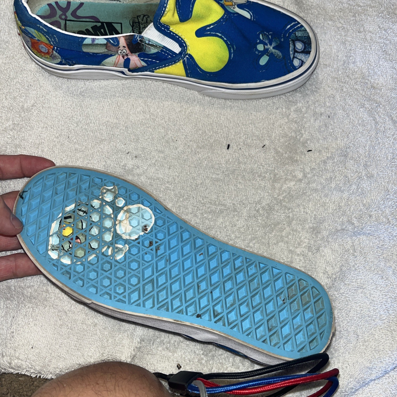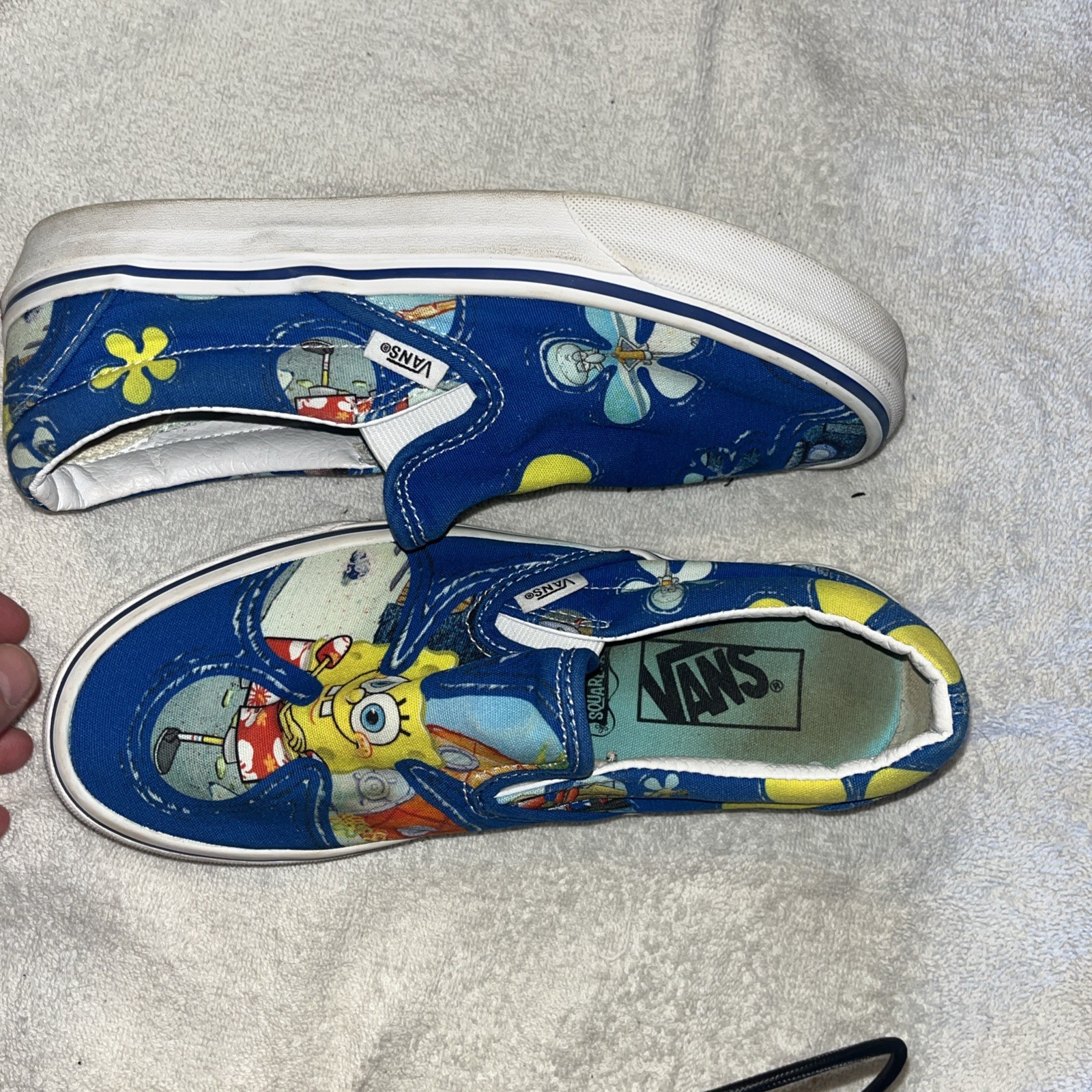 The Vans X SpongeBob Classic Slip-On (AlohaBob) Sneakers Loafers in size 6 unisex are a limited edition collaboration between Vans and SpongeBob SquarePants. These slip-on loafers feature an almond toe shape, canvas fabric type, and rubber outsole material. The design is accented with the SpongeBob logo and is suitable for travel, activewear, and casual occasions. The shoes also offer features such as cushioning, slip resistance, and comfort, making them a versatile option for any season.