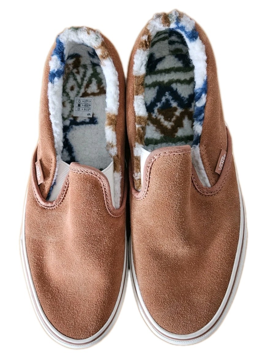 Van Off the wall Classic Slip on Sherpa Lined Shoes Adult Unisex Men's Size 8 or Women's Size 9.5 Orange Suede with Aztec or South Western Serpa lined sole Tread in great condition and not very dirty a few marks on the soles very nice Pre-owned Condition Usps Ground Advantage Shipping