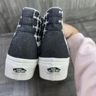 The Vans Tapered Sk8-Hi Women's size 9.5 Dark Grey Denim Stacked Shoes are a high-top, lace-up style sneaker designed for casual occasions. Featuring a stacked denim upper with rubber outsole, these shoes are perfect for skateboarding and have a vintage-inspired look. The dark grey color and logo accents add a touch of style to this athletic shoe, which is part of the VANS Sk8-Hi product line. Ideal for summer, fall, and spring seasons, these sneakers offer both comfort and functionality for women who appreciate a trendy shoe option.