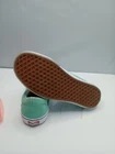 THESE SNEAKERS ARE IN VERY GOOD CONDITION. THEY CAN BE LAUNDERED. I WORE THEM ONCE. THEY HAVE VISIBLE SIGNS OF DIRT. NOTHING A LITTLE PERSIL.. WILL CLEAN UP LIKE BRAND NEW. Step out in style with these Vans Unisex Off The Wall 751505 sneakers in a refreshing mint green color. These casual shoes feature a low top shoe shaft style with lace-up closure and a comfortable synthetic upper material. The rubber outsole provides durability for all seasons and activities, making it perfect for sports-themed occasions. This sneaker model, with a style code of 751505, is designed for unisex adults and comes in US shoe size 8.5 and UK shoe size 7.5. It has a W shoe width and a breathable comfort feature. The Vans brand is known for its quality and style, making these sneakers a perfect addition to any wardrobe.