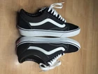 The Vans Unisex Off The Wall Old Skool Black/ White sneakers in size M-7 W-8.5 feature a low top shoe shaft style, lace-up closure, and rubber outsole for comfortable wear. These athletic shoes are perfect for casual occasions and are ideal for skateboarding. With a combination of black suede upper material and rubber outsole, these sneakers are both stylish and durable. The Vans Old Skool model is a classic choice that offers both comfort and performance, making it a popular choice for men looking for a versatile and trendy shoe.