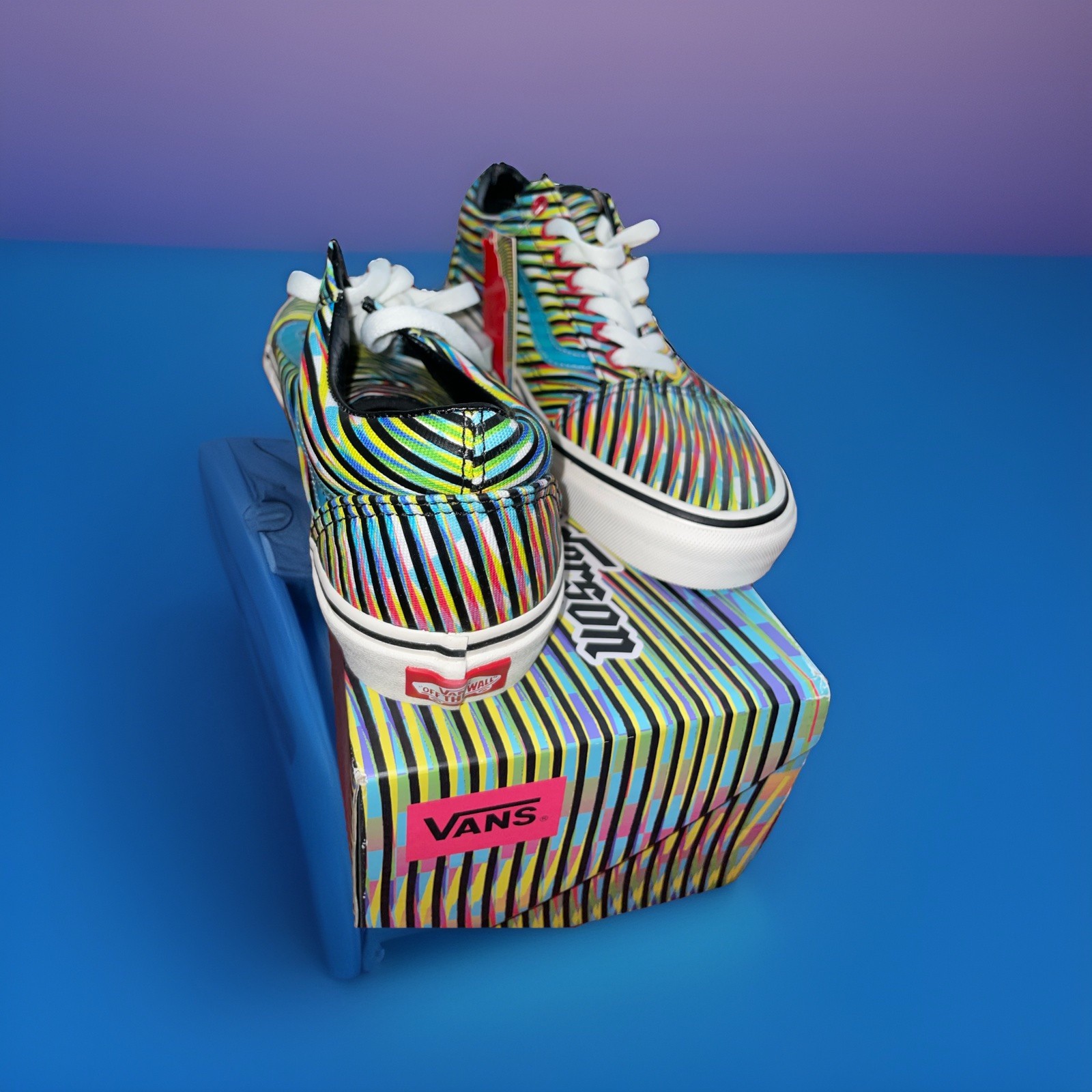 The Vans Vault Old Skool DX (Anderson Paak) Venice Multicolor Men's Sneakers are a stylish and unique addition to any sneaker collection. With its low top design and custom multicolor pattern, these shoes are sure to stand out. Made with fabric upper material and featuring the iconic Vans Old Skool model, these sneakers are both fashionable and comfortable for everyday wear. Perfect for men who appreciate individual style and quality craftsmanship, these sneakers are a must-have for any sneaker enthusiast.