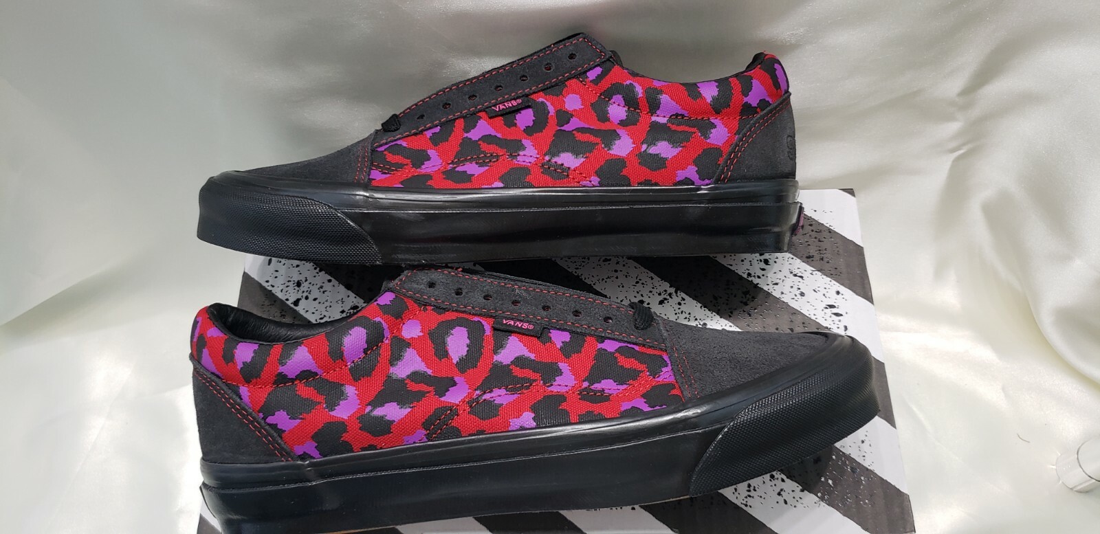 These are brand new Vans Vault x Stray Rats UA Old Skool NS OG LX "Raven & Racing Red" sneakers, size 10 men's. They are guaranteed 100% authentic. I purchase all my shoes through authorized dealers. If you have any questions, please feel free to contact me. T he Stray Rats aesthetic is difficult to sum up, but it’s a perfect embodiment of founder Julian Consuegra. This season, the Miami-born, New York City-based label partners with Vans Vault to celebrate subculture with a trio of iconic styles. This pair of Old Skools has the collection’s recurring leopard print across the canvas sidewalls, its green hue juxtaposed against luxe brown suede at both the heel and ankle. The latter is also where you’ll find Stray Rats’ varsity-style branding subtly debossed and sat right above a reworked ‘OFF THE WALL’ tab. Canvas Uppers Suede Overlays High Foxing Tape Vulcanised Midsole Gum Rubber Outsole