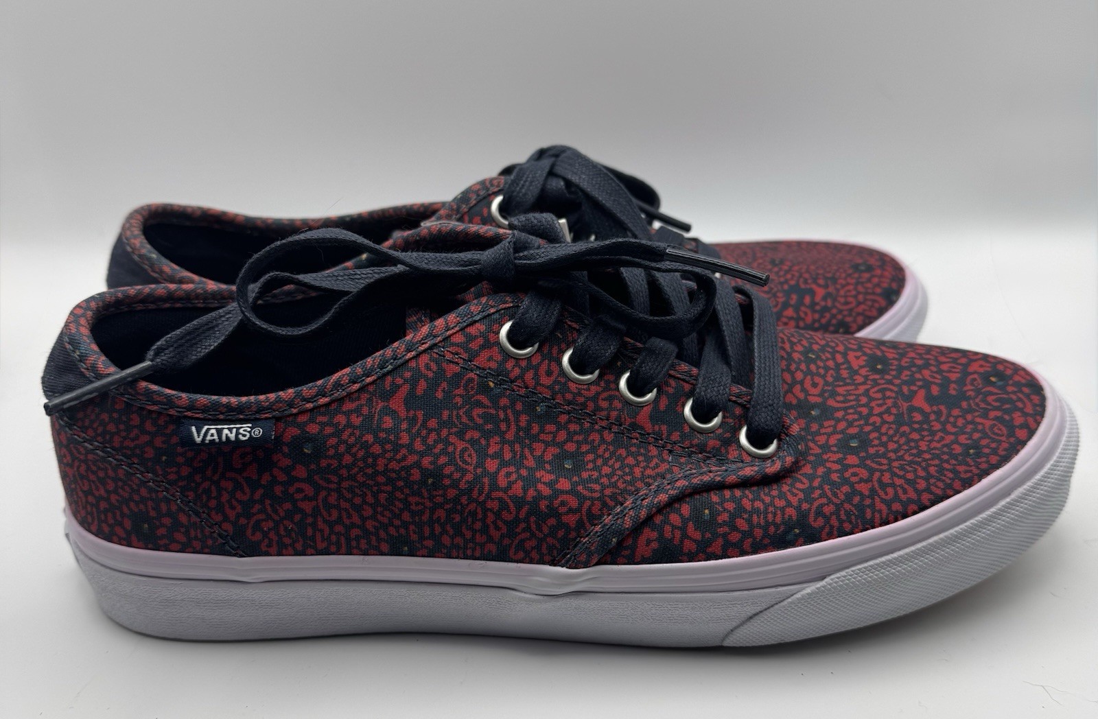 The Vans Ward Women's Size 8.5 Shoes in red and black floral print canvas are a stylish and versatile choice for any casual or activewear occasion. With a low top design and lace-up closure, these sneakers feature a standard shoe width and a comfortable fabric upper material. The multicolor floral pattern adds a fun and feminine touch, while the rubber outsole provides durability and support for walking, school, or skateboarding activities. Perfect for the summer, fall, or spring seasons, these Vans Ward sneakers are a trendy addition to any woman's athletic shoe collection. Please see all pictures before purchasing. If you have any questions, feel free to ask! :)