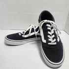 The Vans Women's Size 7 Old Skool Black White Canvas Low Top Skate Shoes are a classic and stylish option for activewear or casual outings. Made with breathable canvas fabric and featuring a comfortable lace-up closure, these sneakers are perfect for skateboarding or everyday wear during the summer, fall, and spring seasons. The black color with white accents and logo detail adds a trendy touch, while the rubber outsole ensures durability and grip. This iconic Vans model, known for its skater girl character and standard shoe width, is a must-have for any wardrobe.