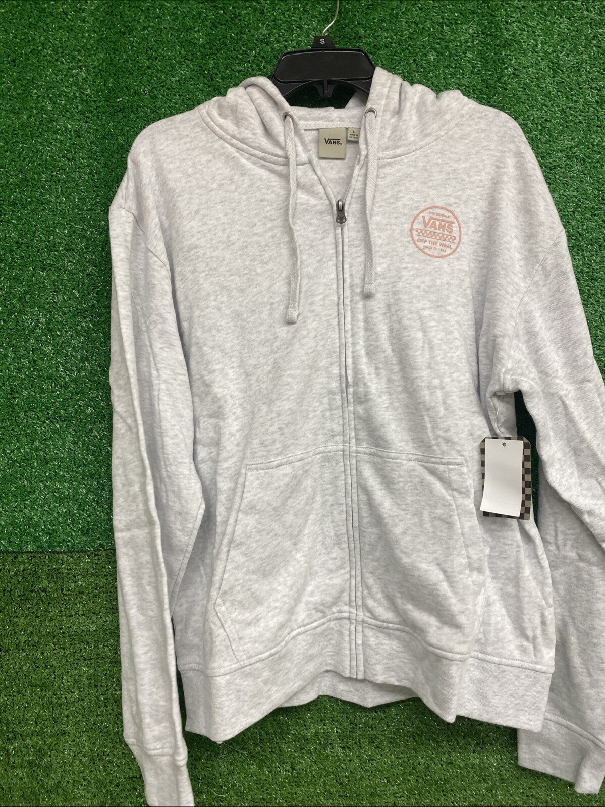 This is a Vans Women's Stackton Circle Zip-up jacket in gray, size Large. It is made of cotton and features a basic jacket style. Perfect for adding a trendy touch to your casual outfits. SKU-h79 Date-12/16/24 Listed by- TH Item condition-new with tags Shade/size- grey/large See pictures