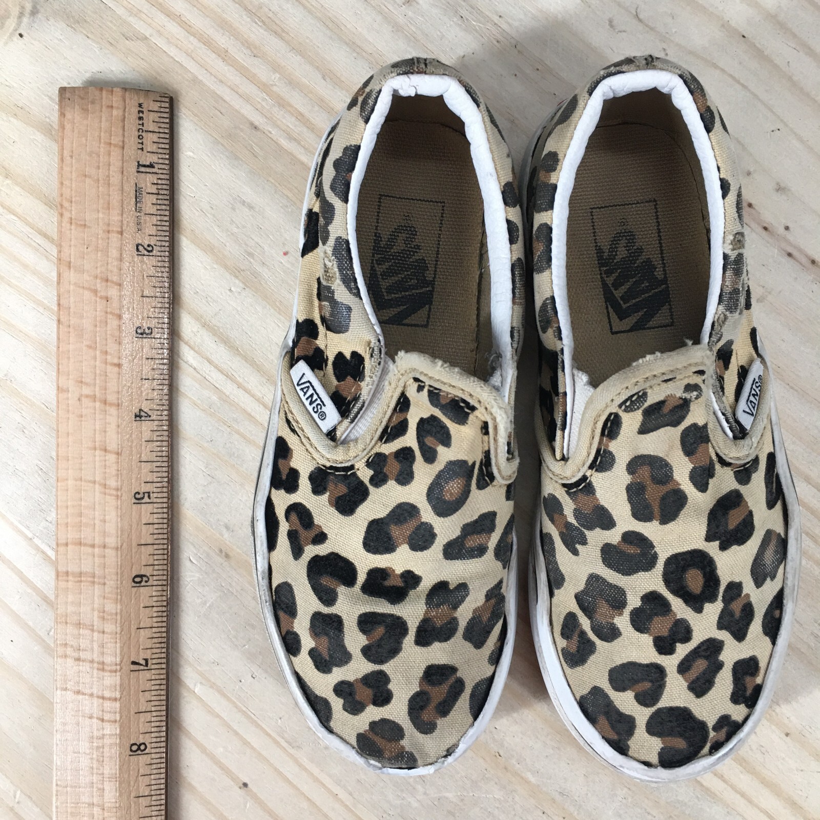 Vans Shoes Youth 12 Animal Print Platform Slip On Comfort Loafer Brown Fabric *Please read the entire description* Great Condition: Tops have scuffing, and staining. Bottoms have heel wear and slightly worn insole. Nice looking shoes. US Size: 12 UK Size: 11.5 AU Size: 11.5 Euro Size: 29 Item well cared for. We ship SAME DAY the item is ordered so expect a FAST delivery! Condition of shoes are best viewed by zooming in on pictures. Please look at all of them :) The photo with a ruler is lined up with the back of the heel and shows the approximate length of the shoe from the top view. Measure and compare your own shoes in the same fashion. We are sorry but we cannot answer any questions regarding further measurements. The tag on the shoes is just a SKU number for organization and is not a size or a price tag. Message me if you have any problems and we will make it right QUICKLY! We post 100s of items every week in my store. Check it out!